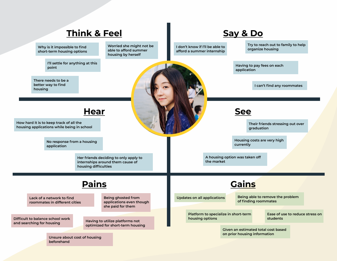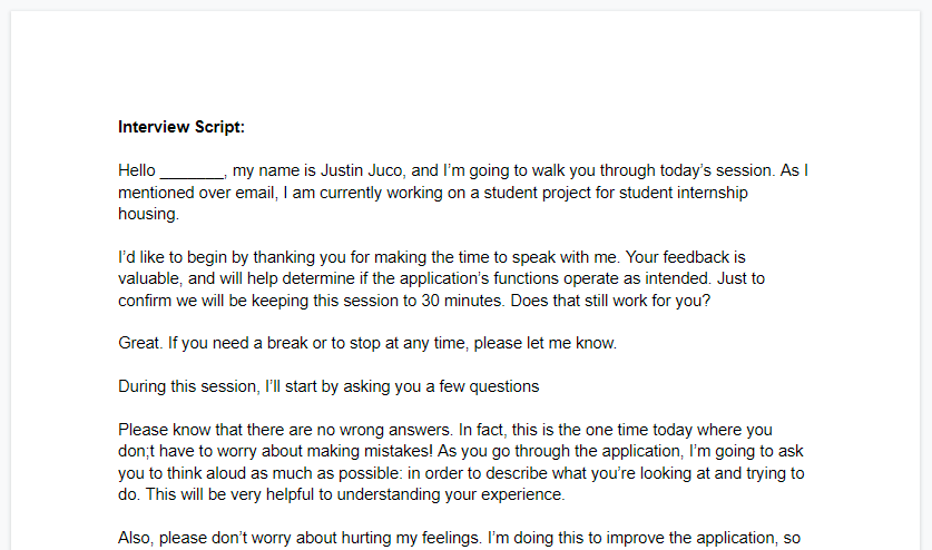 • Topic: How do you feel about the importance of a platform to help with internship housing?• Topic: What short-term and long-term goals should a platform like this have?