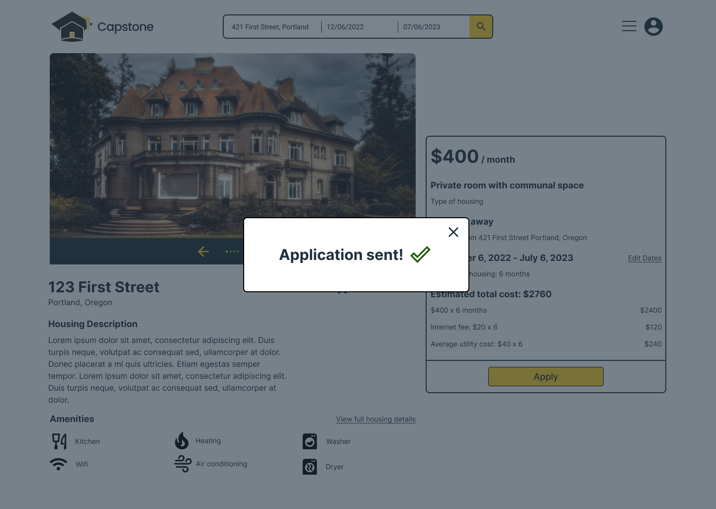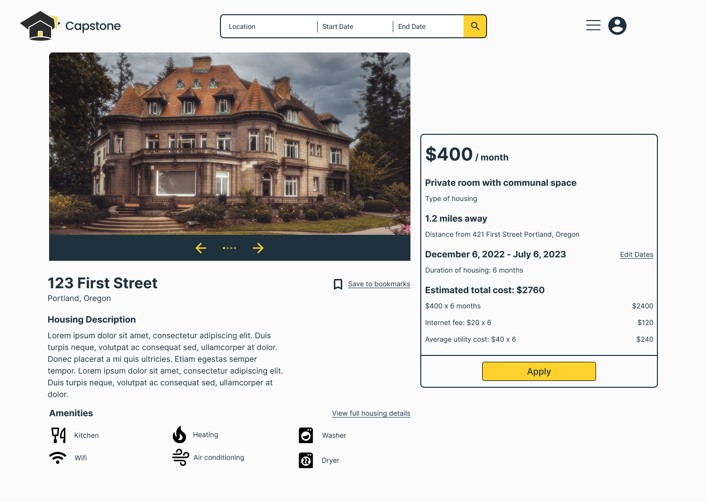 • As a user, I want to know the total cost of my housing before I’m under contract, so I know exactly what to expect.