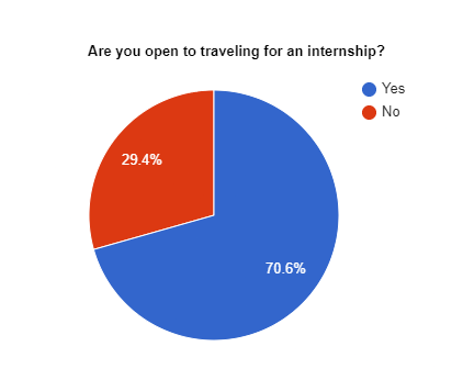 • Over 70% of participants states they were open to traveling for an internship and the second leading stressor to potentially traveling is planning their housing situation